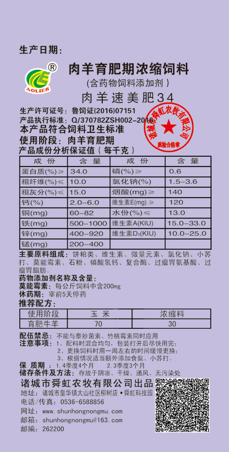 育肥期羊用配合飼料